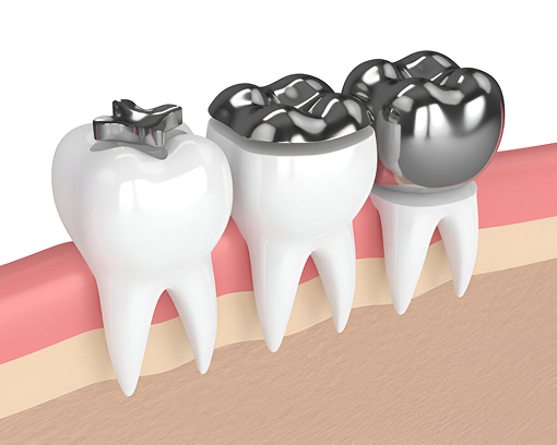 They are made from a combination of metals that include mercury, silver, tin and copper. This type of filling has been used for more than 100 years and is very durable but has the disadvantage of showing silver color. Not ideal for front teeth or teeth that show while smiling.